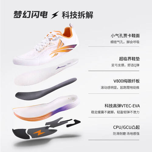 沃兰迪冠军同款梦幻闪电跑鞋,以其全碳设计和超级碳板,专为短跑和立定跳远而生。它的抓地防滑设计,确保运动员在关键时刻的稳定性。而科技高弹的VTEC-EVA中底,提供了极佳的缓震效果,保证了运动时的舒适感。